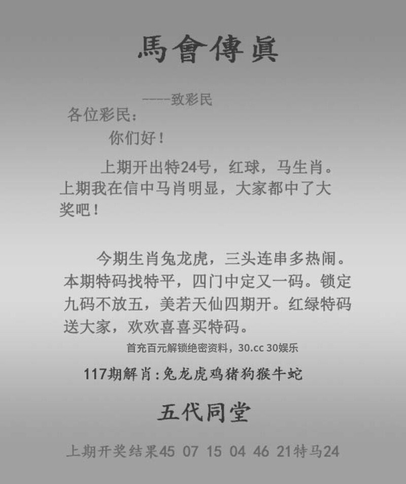 | 117期:三季中特【夏秋春】开:虎04准 |